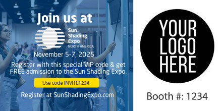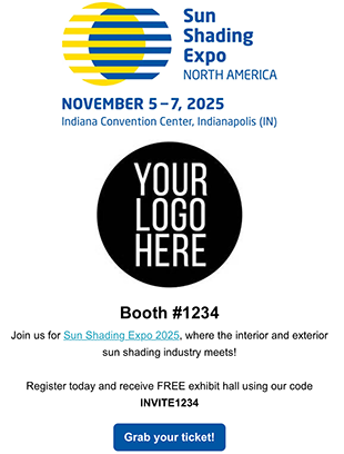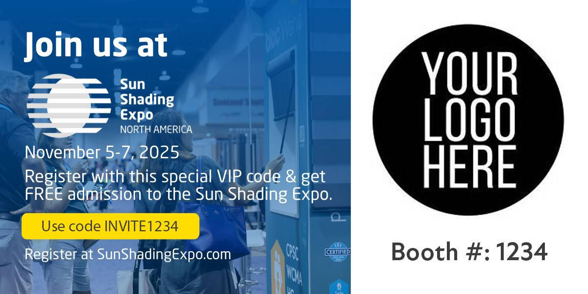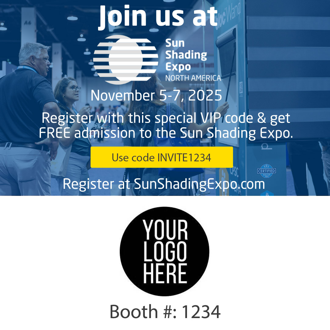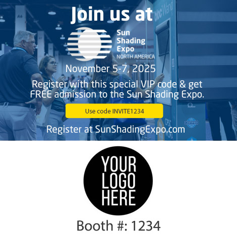 Share your unique promo code and registration link with customers and prospects to invite them to join you at Sun Shading Expo 2025.