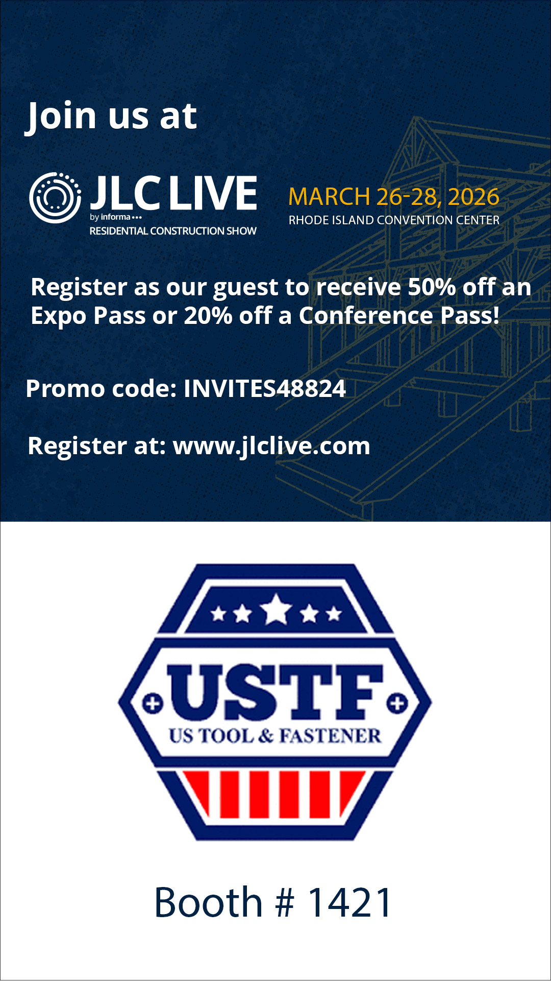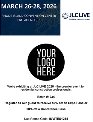 Share your unique promo code and registration link with customers and prospects to invite them to join you at JLC LIVE 2026.