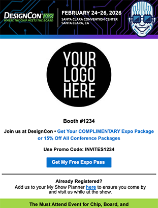 Share your unique promo code and registration link with customers and prospects to invite them to join you at DesignCon 2026.